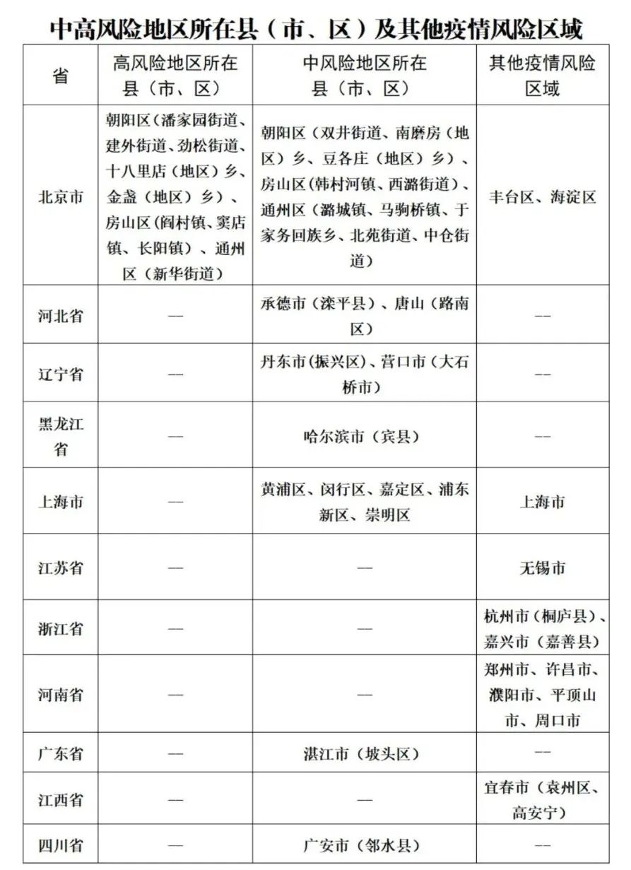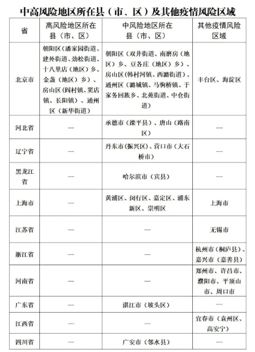 备注:中高风险地区根据国务院客户端查询,其他疫情风险区域根据网络数据整理(近期新增感染者较多的地区)。