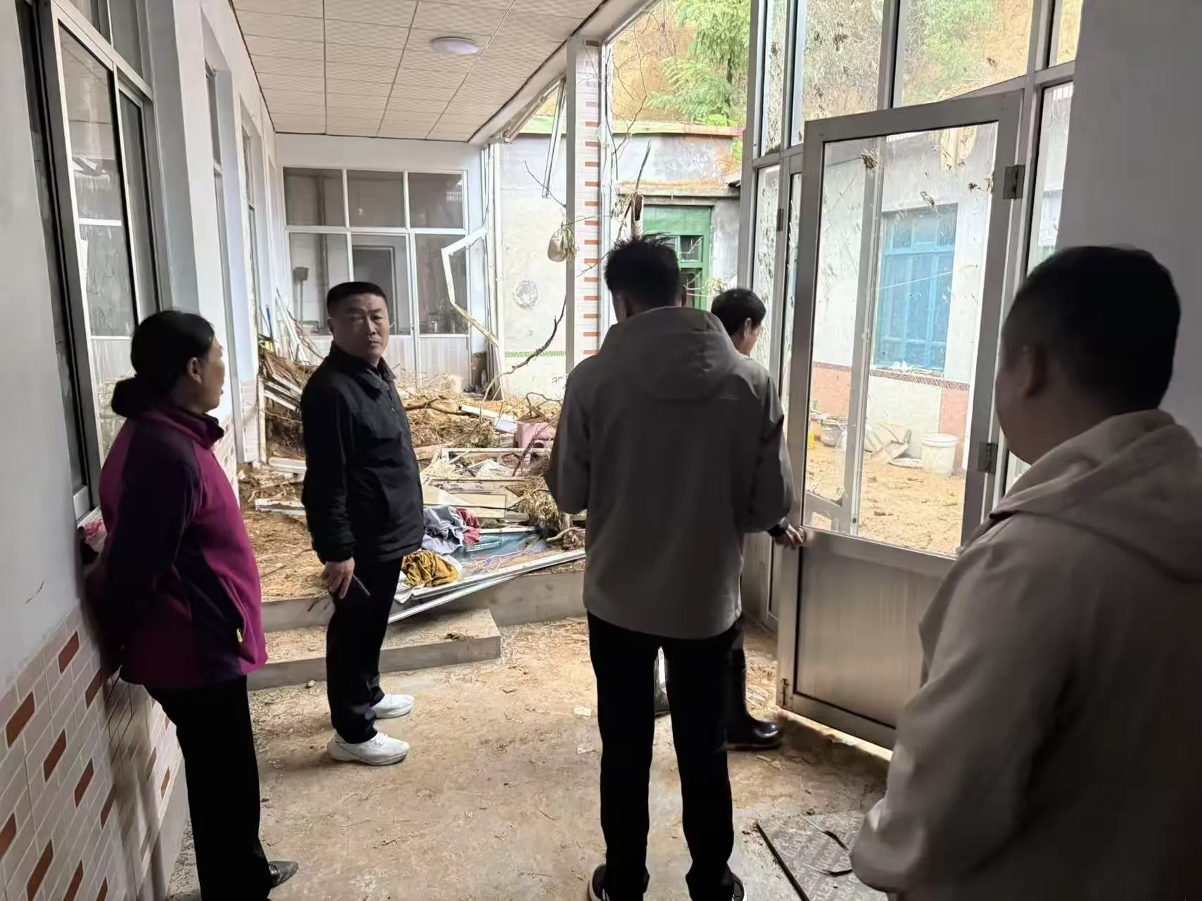 10月11日,应急办配合保险公司到沙湾村对因降雨灾害点受损房屋进行实地查看,通知村民提供相关材料,让群众做好人员转移。