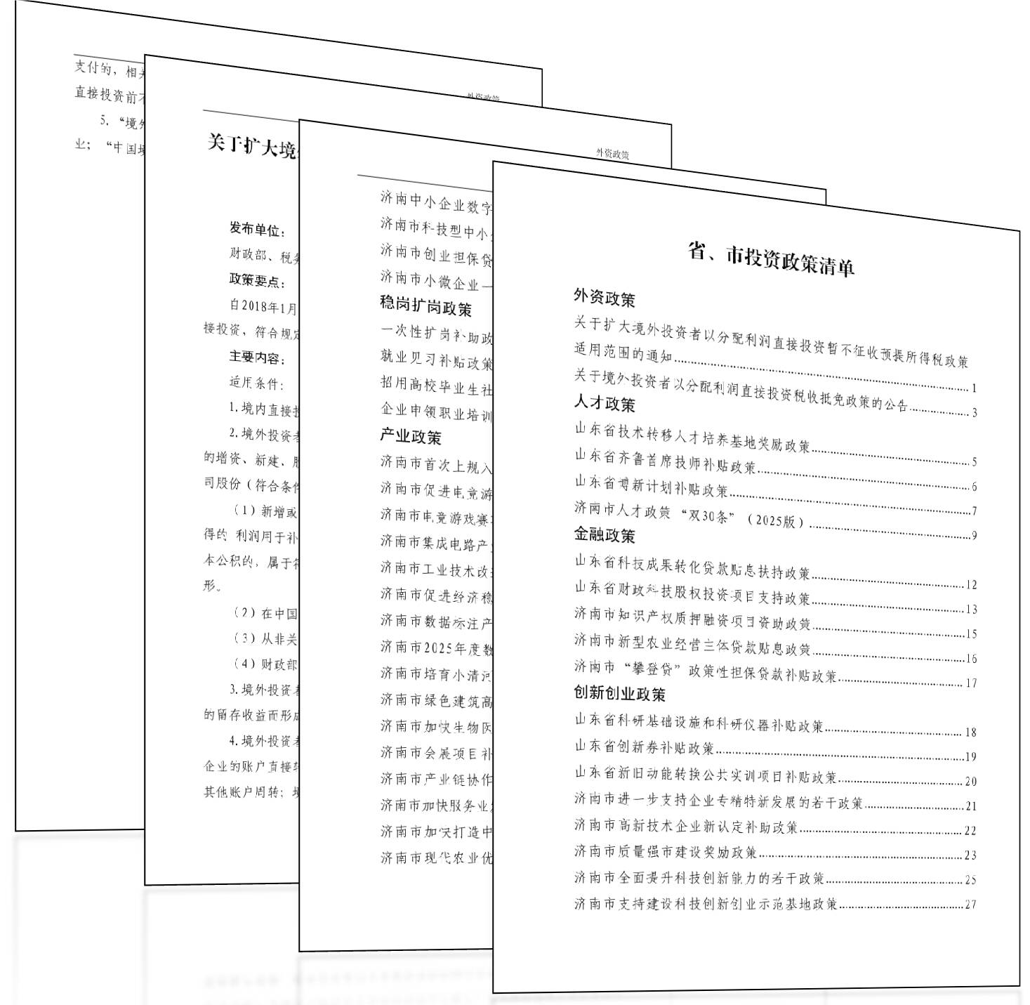 为主动适应招商引资新形势,用专业政策加码项目招引、落地全过程,投促局系统梳理整合了省、市层面外资、创新创业、产业等多类现行政策43条,形成《省、市投资政策清单》。
