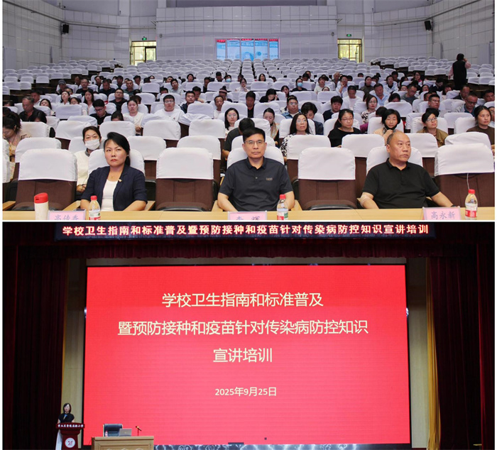 为进一步推广儿童青少年学生常见病防控适宜技术,普及预防接种和疫苗针对传染病防控知识,提升校园疾病防控能力,9月25日下午,区卫生健康局与教育体育局联合组织的“学校卫生指南和标准普及暨预防接种和疫苗针对传染病防控知识宣讲培训”在章丘区鲁能实验小学报告厅成功举办。区教体局、区疾控中心、全区各中小学校、民办学校、区直幼儿园、医疗机构预防接种门诊、区青少年近视防控中心等单位的相关工作人员共263人参加了此次培训。