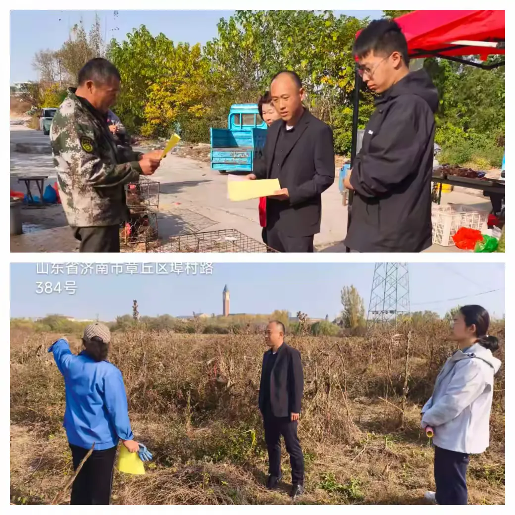 11月14日,农委开展鹅庄大集野生动物巡查和果园非法下网行为巡查。