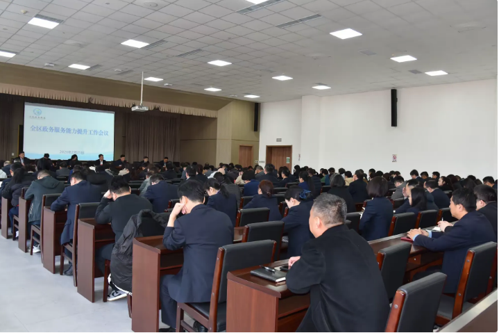 区政府办公室副主任王虎,各驻厅窗口部门、各分中心、各街镇便民服务中心相关负责同志、区行政审批服务局全体干部职工参加会议。