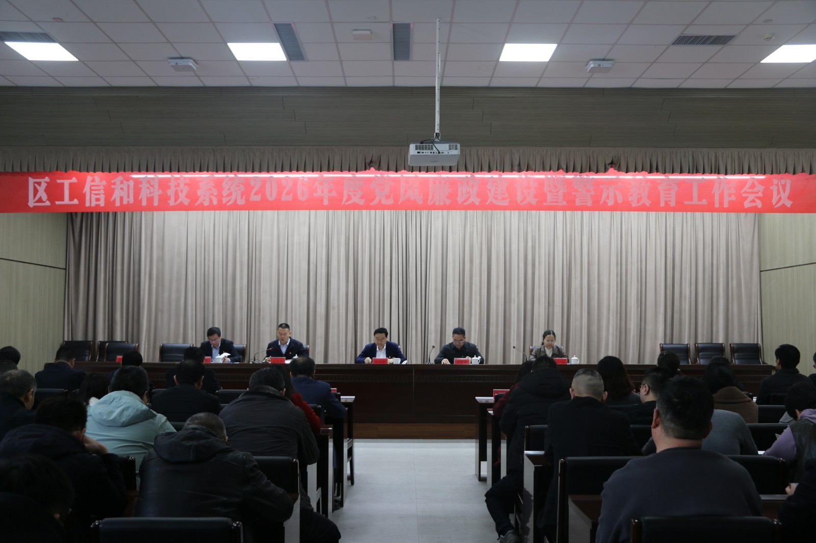 3月19日上午,区工信和科技系统召开2026年度党风廉政建设暨警示教育工作会议。区纪委监委派驻第五纪服务监察组副组长张宝军,区工信和科技局、区科技事业服务中心全体领导干部及工作人员参加会议。