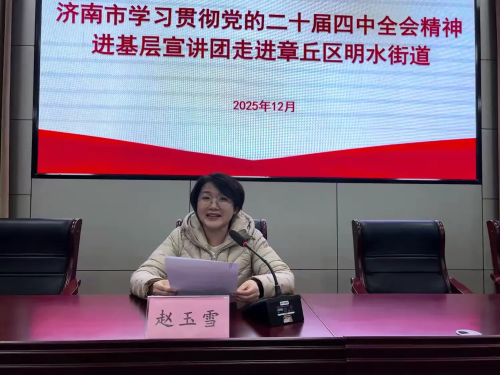 12月23日上午,济南市学习贯彻党的二十届四中全会精神进基层宣讲团走进章丘区明水街道西石河村,绣江党建工作区工作人员、各村党组织书记,西石河村两委、党员、村民代表,街道年轻干部理论学习小组全体人员参加。