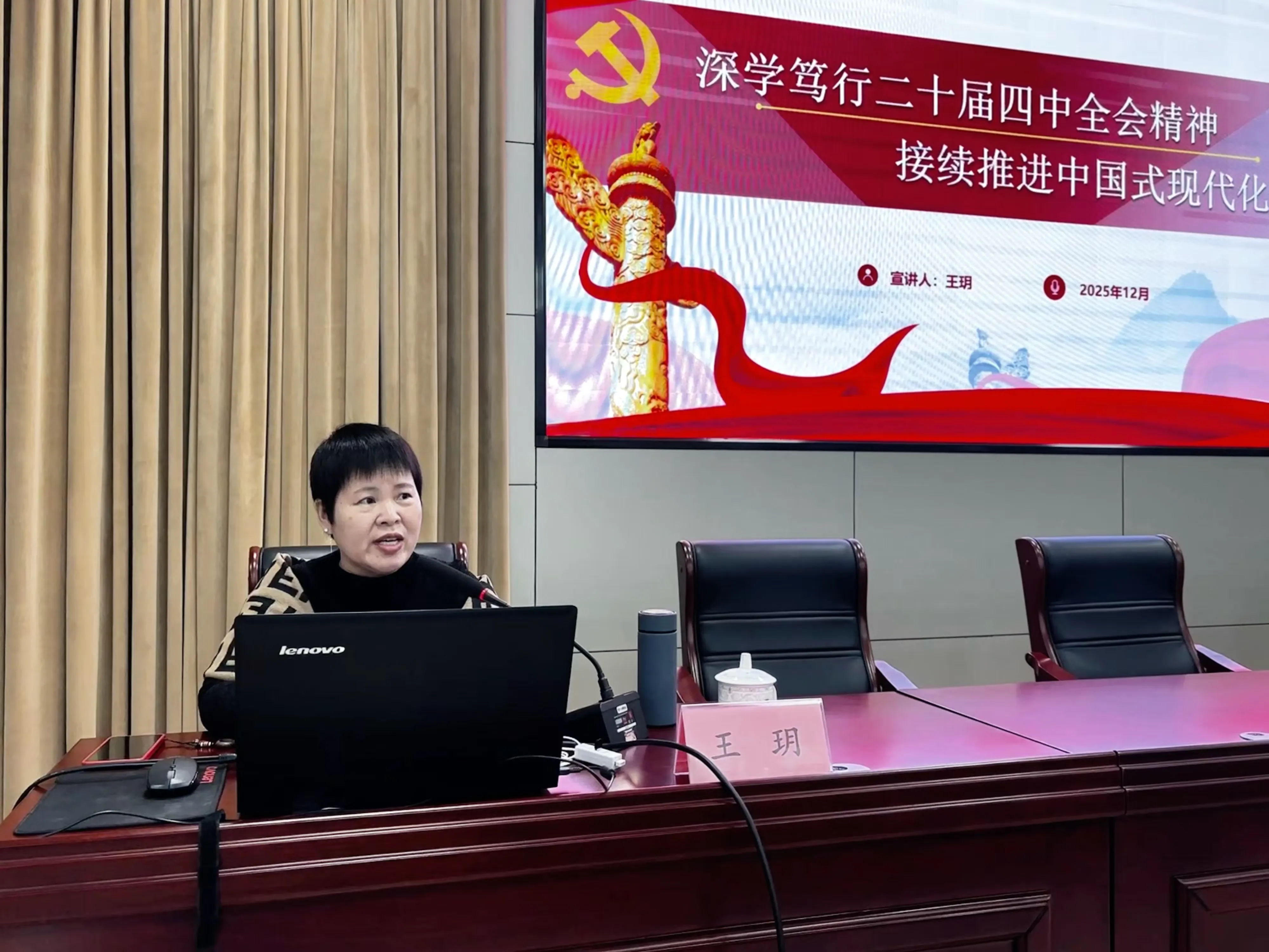 活动邀请齐鲁理工学院马克思主义学院党总支书记、副教授王玥作专题辅导报告。王玥围绕学习贯彻党的二十届四中全会精神,从深刻认识党的二十届四中全会的重大意义,准确把握“十五五”时期在基本实现社会主义现代化进程中的重要地位,深刻领会“十五五”时期经济社会发展的指导方针和主要目标,全面理解“十五五”时期经济社会发展的战略任务和重大举措,坚持和加强党的全面领导、凝聚起推进中国式现代化的磅礴力量等方面,对全会精神进行了系统阐释、深入解读和全面宣讲。