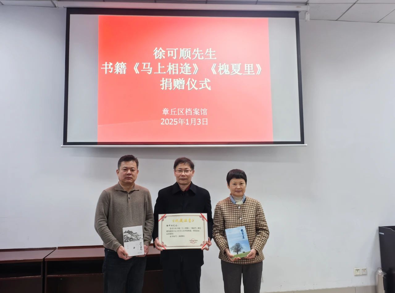 2025年1月3日下午,徐可顺先生的著作《马上相逢》、《槐夏里》和《生活日报》创刊号、《齐鲁晚报》第9999期等48份藏品捐赠章丘区档案馆收藏。
