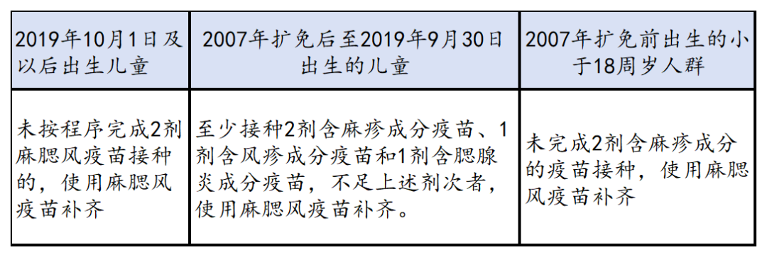 接种含腮腺炎成分的疫苗可以有效预防流腮的发生,麻腮风联合减毒活疫苗是国家免疫规划疫苗,满8月龄和满18月龄儿童分别免费接种一剂次,可以有效预防儿童麻疹、流行性腮腺炎和风疹3种疾病的发生。适龄儿童及时、尽早完成两剂次麻腮风联合减毒活疫苗的接种,可有效降低流行性腮腺炎的发病率。如果儿童没有按照免疫程序完成接种,要按照以下补种原则进行补种: