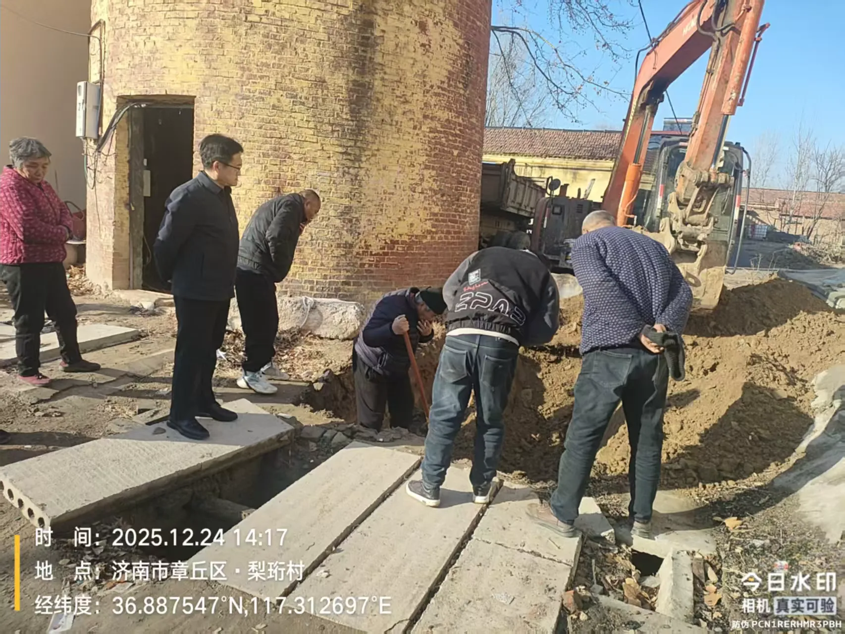 本周,12月24日,人大工作室主任邢攸青带领水利站工作人员到梨珩村督导自来水整改工程施工工作。