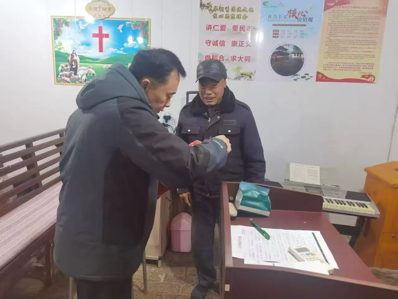 12月23日,党工委委员、党政综合办公室副主任王恩孝到辖区宗教场所检查安全措施落实情况,并重申圣诞节期间的注意事项。
