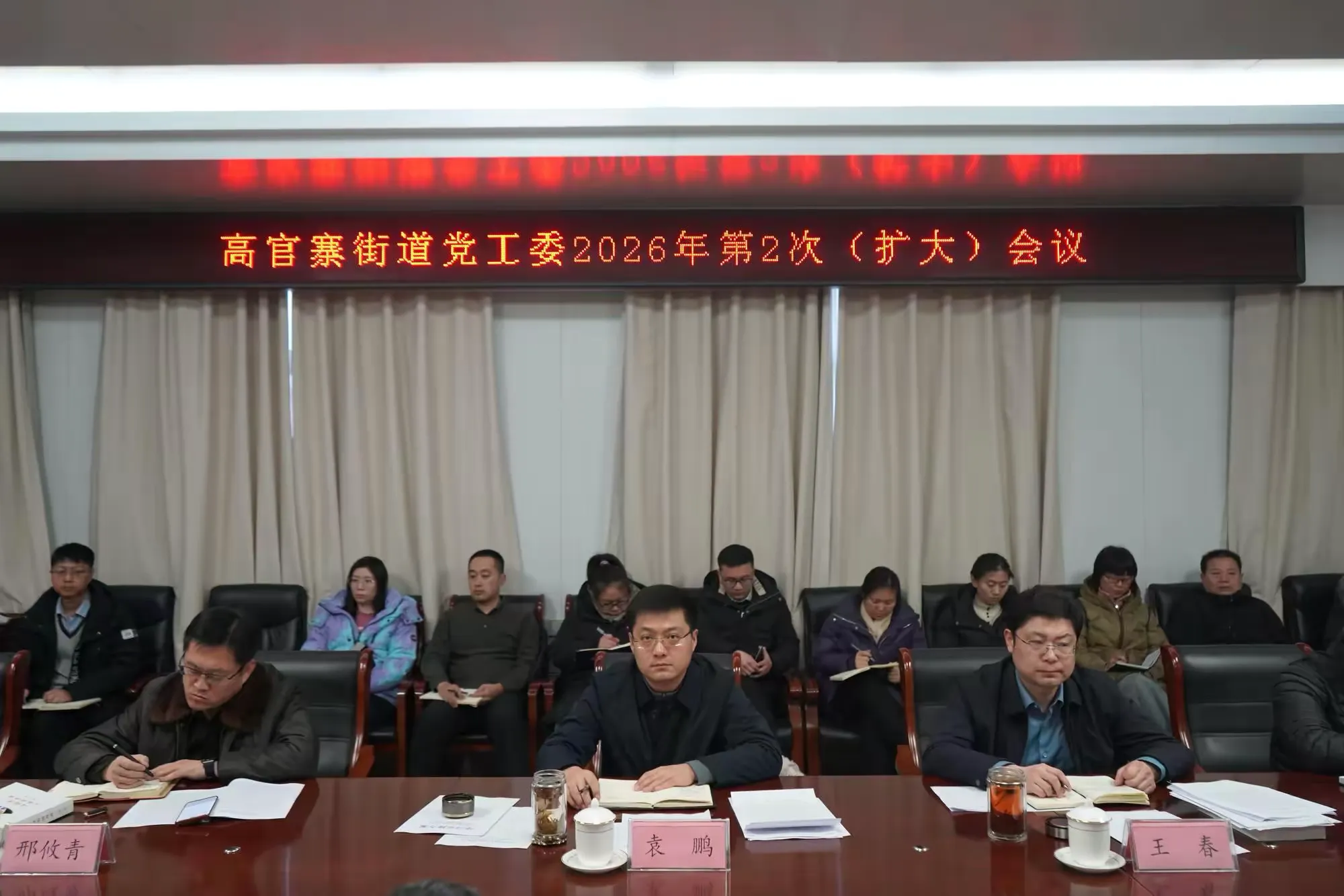 1月19日上午,高官寨街道党工委召开2026年第2次(扩大)会议,全体领导干部、各党建工作区第一副书记、相关部门负责人参加会议。党工委书记袁鹏主持会议。会议强调,统筹抓好年度衔接,系统谋划发展蓝图;深化镇村环境整治,健全长效治理机制;统筹做好春节前后各项重点工作;坚决守牢安全稳定底线,维护社会大局平稳。