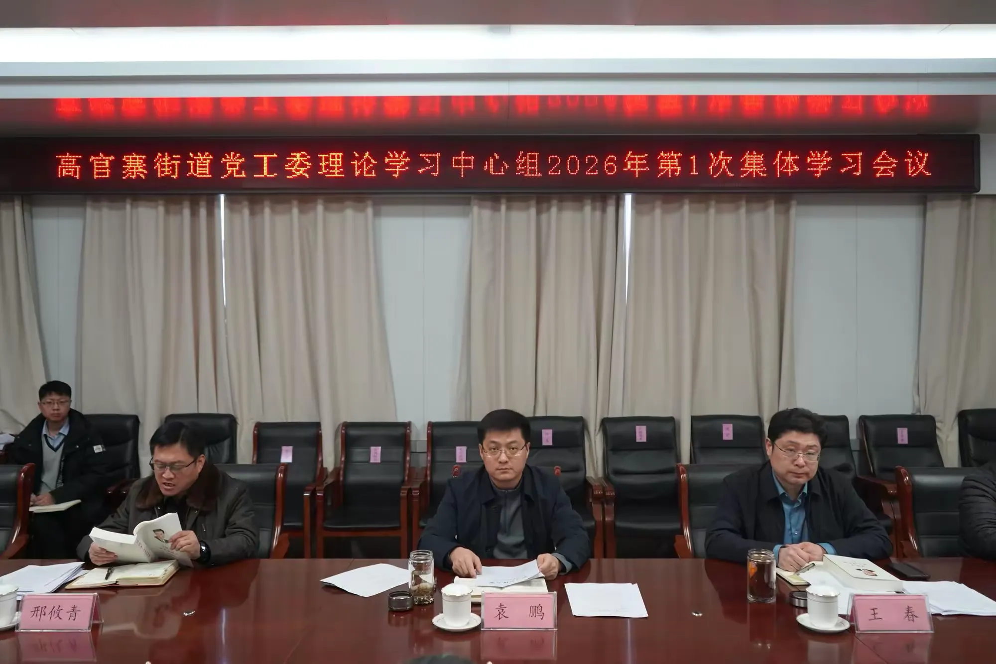 1月19日,高官寨街道党工委理论学习中心组开展2026 年第 1 次集体学习,理论学习中心组全体成员参加,党工委书记袁鹏主持会议并讲话。会议强调,要以此次学习为契机,进一步深刻领会习近平总书记关于中国式现代化重要论述的核心要义与精神实质,切实提高政治站位,强化理论武装,将学习成果切实转化为推动实际工作、破解发展难题、保障改善民生的具体思路与务实举措,确保中央各项决策部署不折不扣落到实处。