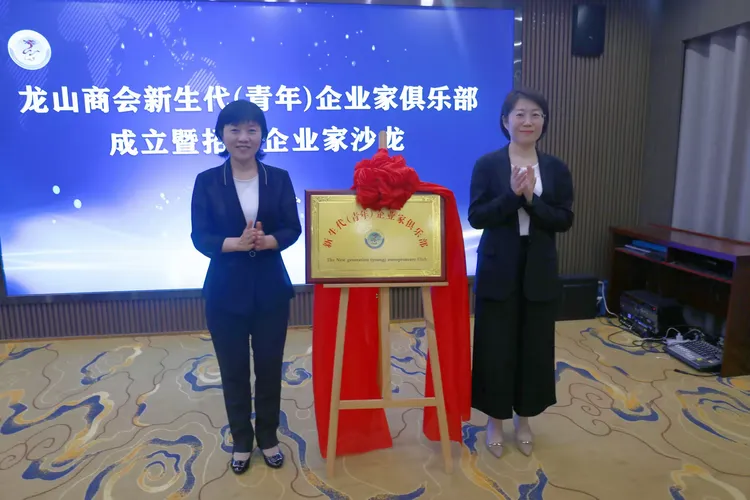 首先举行龙山商会新生代(青年)企业家俱乐部成立大会。区工商联主席陈军华和区商务中心主任刘萍为龙山商会新生代(青年)企业家俱乐部揭牌。