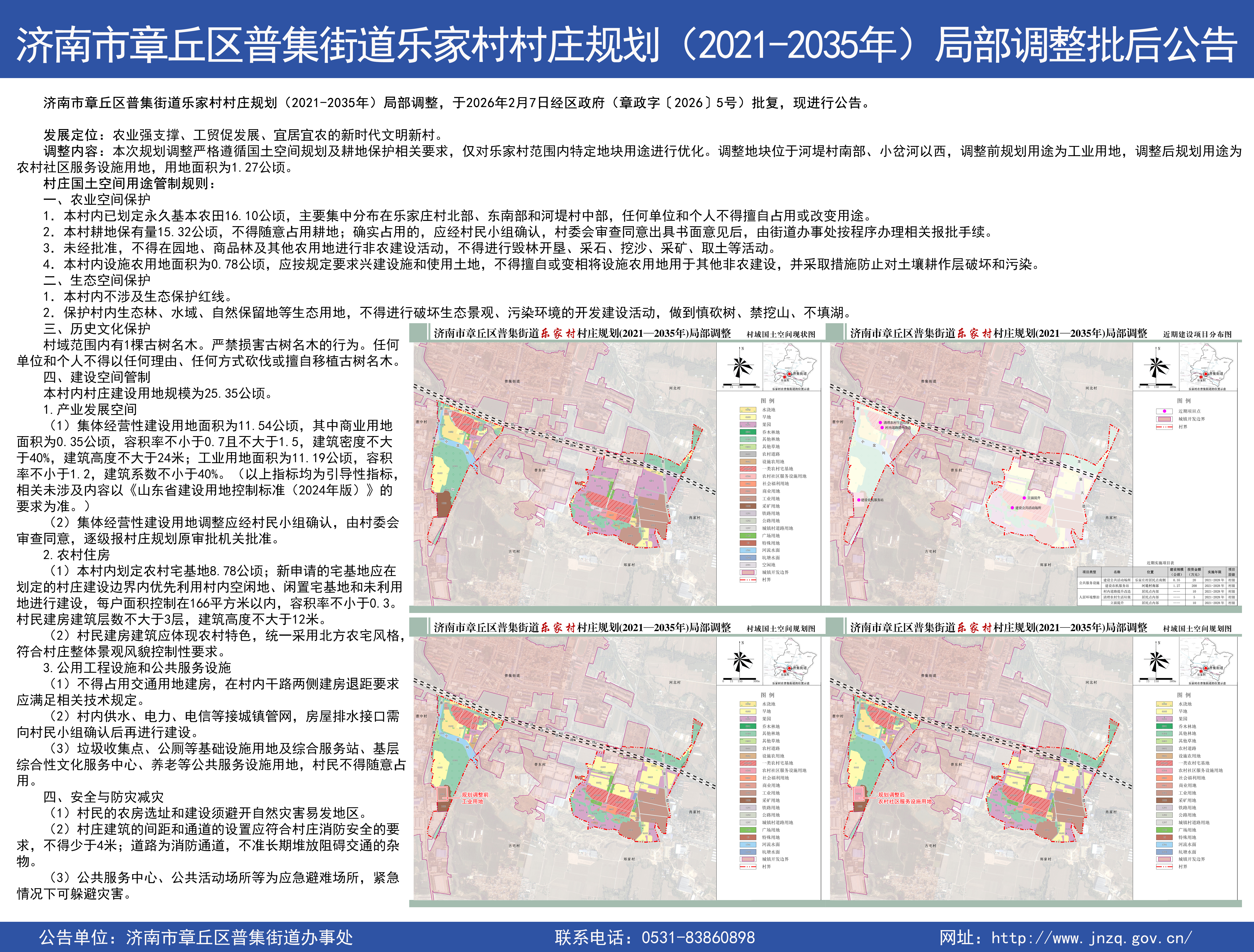 济南市章丘区普集街道乐家村村庄规划(2021-2035年)局部调整批后公告
