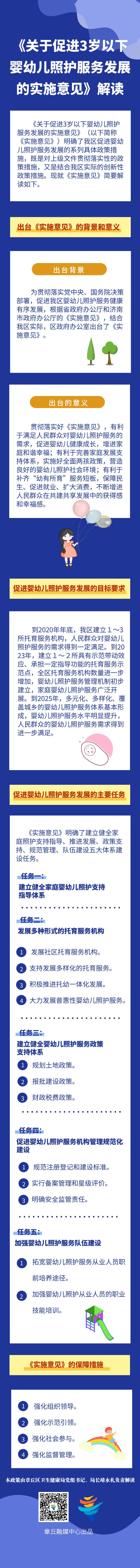 《实施意见》主要从组织领导、示范引领、社会参与、监督管理四个方面保障促进婴幼儿照护服务发展政策措施落地落实见效。